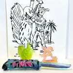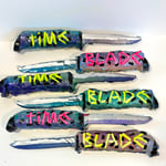 Each figure and knife is unique. Knives in pink or yellow lettering variant. Set chosen randomly. US shipping included. Everywhere else $15 shipping.